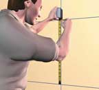 From the 34 1/2-inch line, measure up another 19 1/2 inches and mark a level line across the wall to indicate the bottom of the wall cabinets. Lightly mark the cabinets' dimensions and placement on the wall to double-check your layout. |