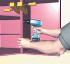 Install the corner wall cabinet first, with a helper. Drill pilot holes through the sturdy cabinet back or its support rail and into wall studs. Screw the cabinet to the wall using two screws that are long enough to penetrate the studs by at least 1 1/2 inches, then check the top for level and the front edge for plumb. To correct the position, back off the screws, tap shims behind the cabinet at stud locations, then drive the screws home and add several more into each stud for secure attachment. |